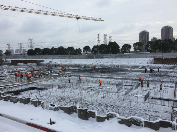 根據施工節點計劃安排,以2018年底藥研所項目交付為目標。在工期緊、任務重的情況下,為了搶節點、抓進度,現場各施工班組按照商業公司的任務交底日夜兼程加班加點。為了確保春節后結構施工順利創出條件,當前藥研所基礎大底板施工正在緊鑼密鼓地進行著。為了應對此次低溫降雪天氣,項目部積極響應集團《關于做好冬季雨雪冰凍、大風等極端天氣施工安全工作的通知》做好冬季建設項目安全管理工作。提前謀劃、主動出擊,組織員工及施工班組開展施工安全教育,堅決落實冬季施工安全措施和質量要求。主要領導身先士卒,既是指揮員又是戰斗員,給全體職工樹立了模范和榜樣,振奮了整個工地的工作熱情。