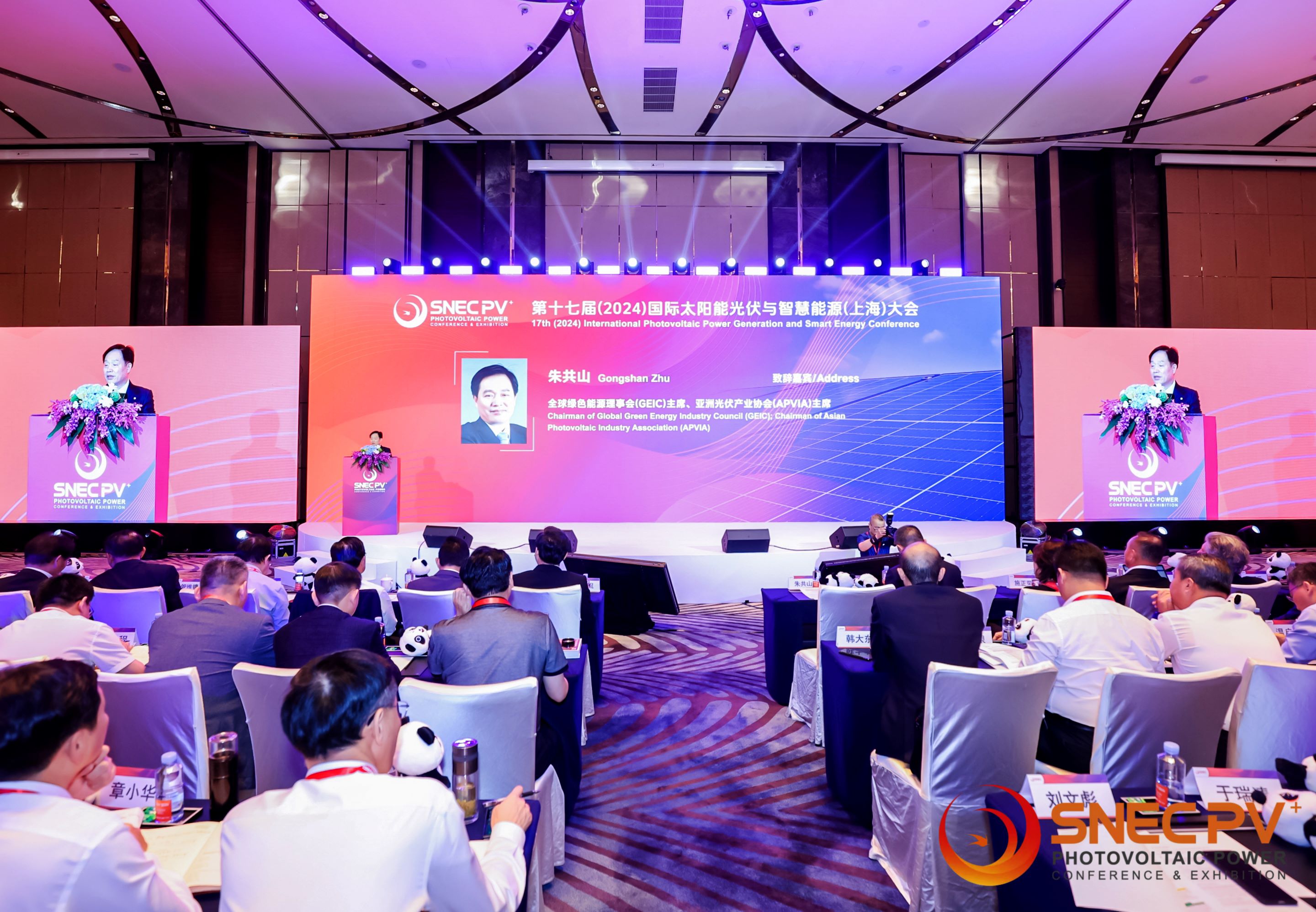 6月11日上午,SNEC第十七屆(2024)國際太陽能光伏與智慧能源(上海)大會在滬開幕。全球綠色能源理事會主席、亞洲光伏產業協會主席、SNEC光儲氫產業聯盟聯席主席、本屆大會執行主席、協鑫集團董事長朱共山出席開幕式并致辭,同時被授予“