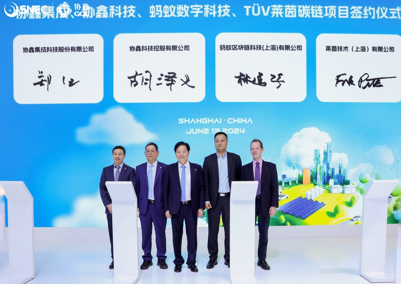 6月13日,第十七屆(2024)國際太陽能光伏與智慧能源(上海)展覽會開幕首日,協鑫集團旗下協鑫集成(002506.SZ)、協鑫科技(03800.HK)聯袂螞蟻數字科技、德國萊茵TüV推動協鑫碳鏈項目升級版全面落地,以此打造協鑫碳鏈2.